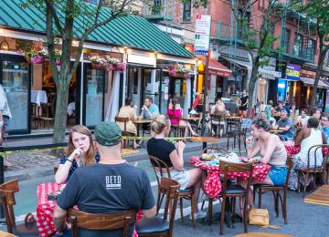 We'll see more roadway space dedicated to pedestrians, cyclists, and outdoor dining